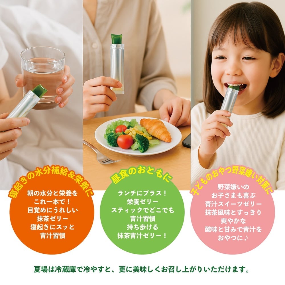 使用用途 就寝前、起床後に。また、デザートや手軽なおやつにも。スティックタイプのゼリーなので、ご年配の方でも安心してお召し上がりいただけます。甘酸っぱく飽きの来ない味なので、野菜嫌いのお子様でも手軽に食物繊維を摂取できます。